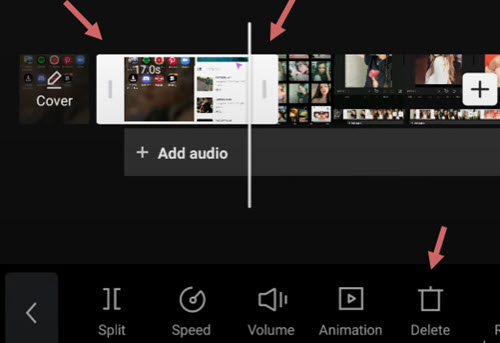 - Remove unwanted parts by tapping the split clip, and hit the Delete icon at the bottom of the screen;